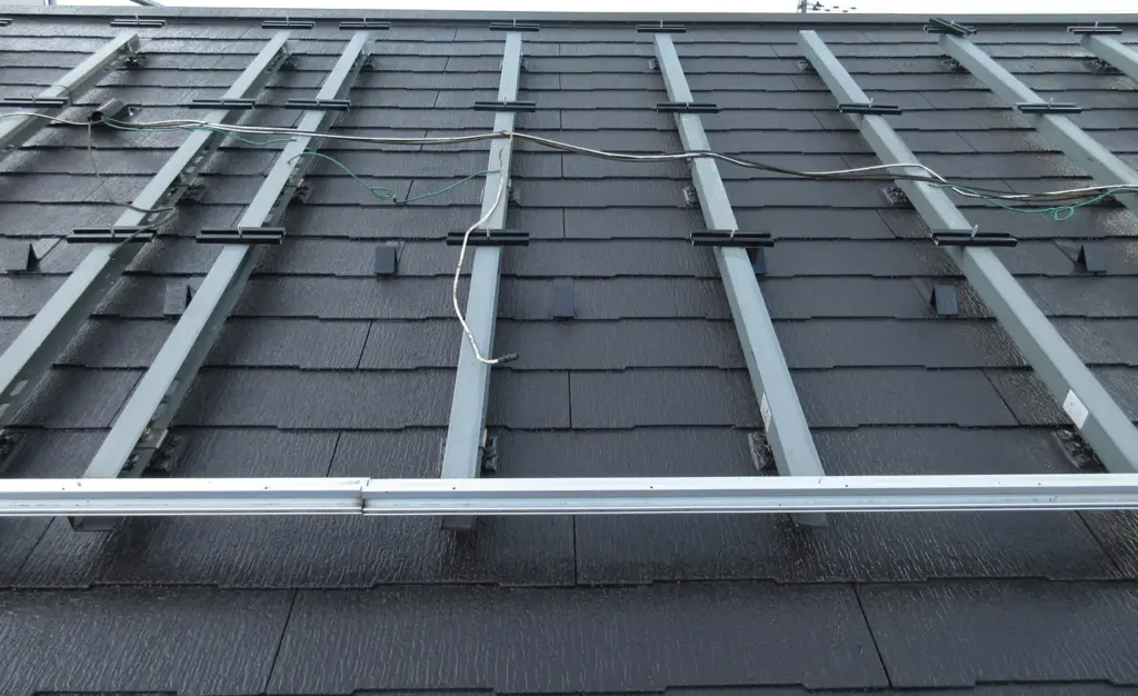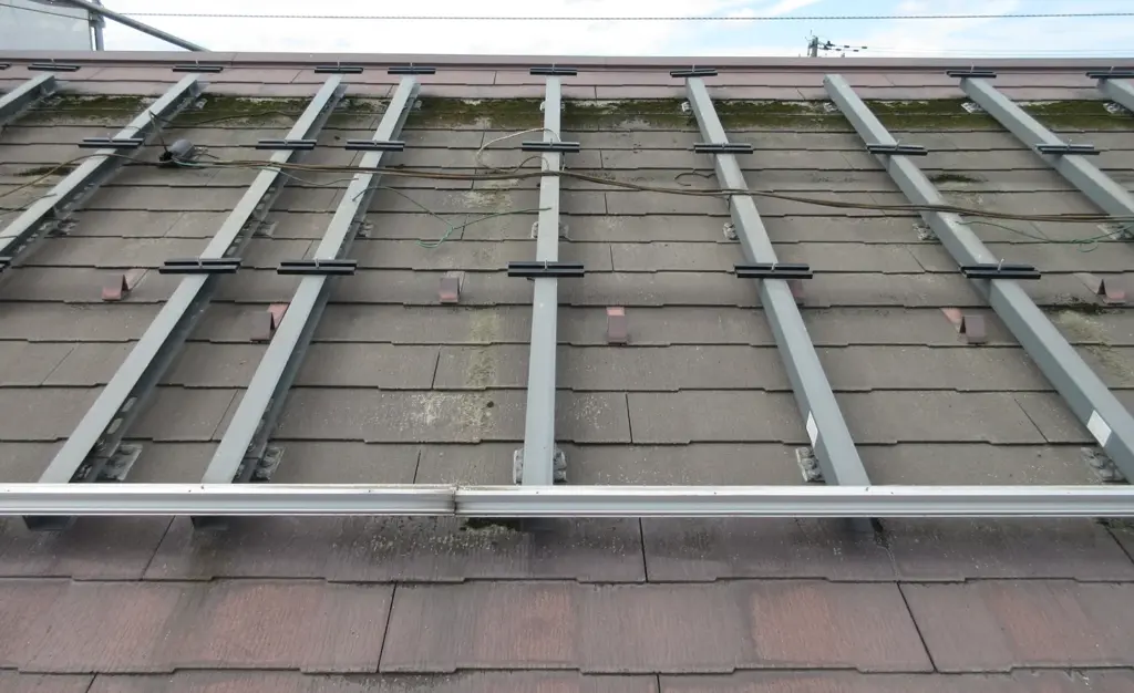 屋根の色が太陽光パネルと類似しているため、目立ちにくい。