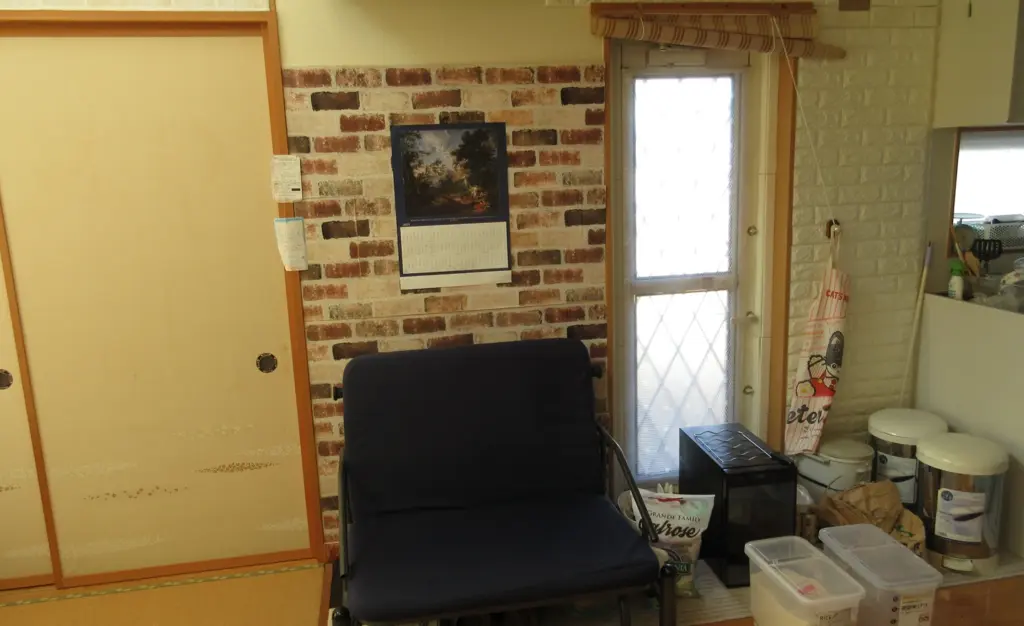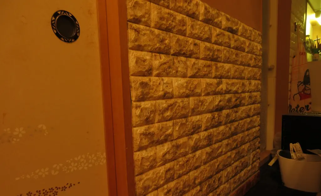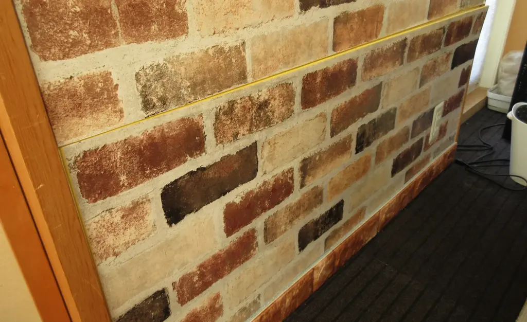 ベージュと茶色のまだら模様が入ったクッションレンガを貼り付けた。