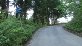 国道304号線から林道に入ってしばらく走ると、「警笛鳴らせ」という標識に出くわす。カーブミラーも見えるが、あまりアテにならないので、徐行しながら進むことになる。