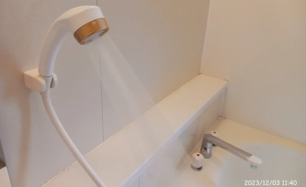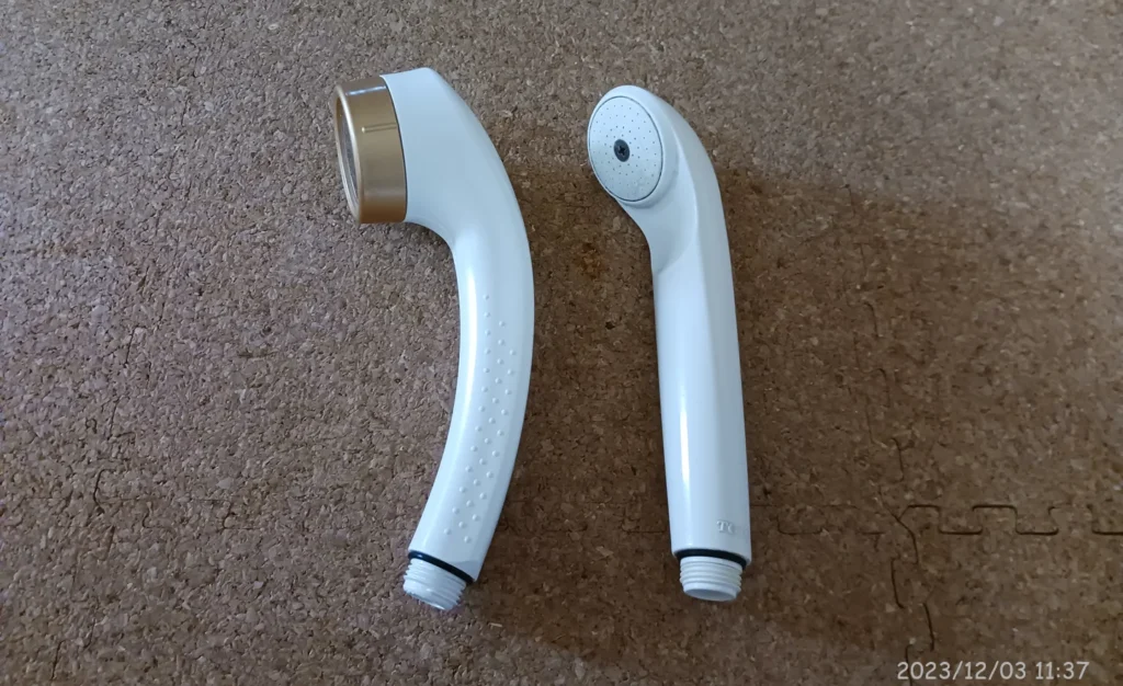 左側のシャワーヘッドの持ち手は湾曲していて、