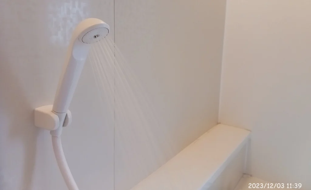 左側のシャワーヘッドの持ち手は湾曲していて、滑り止め加工がされている。