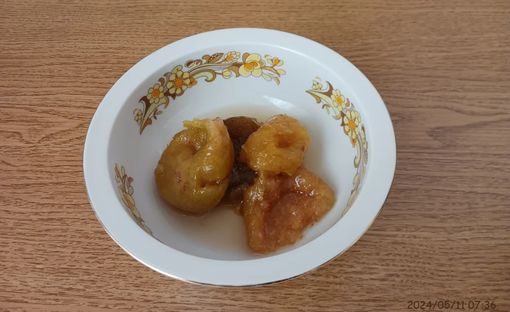 無花果から汁が出ているが、きれいな飴色をしている。