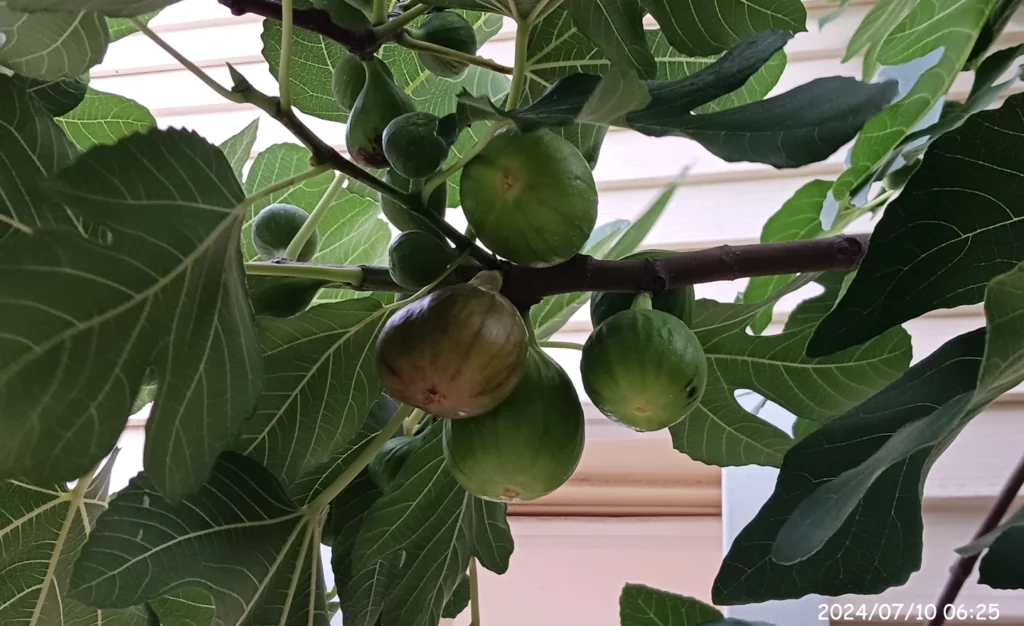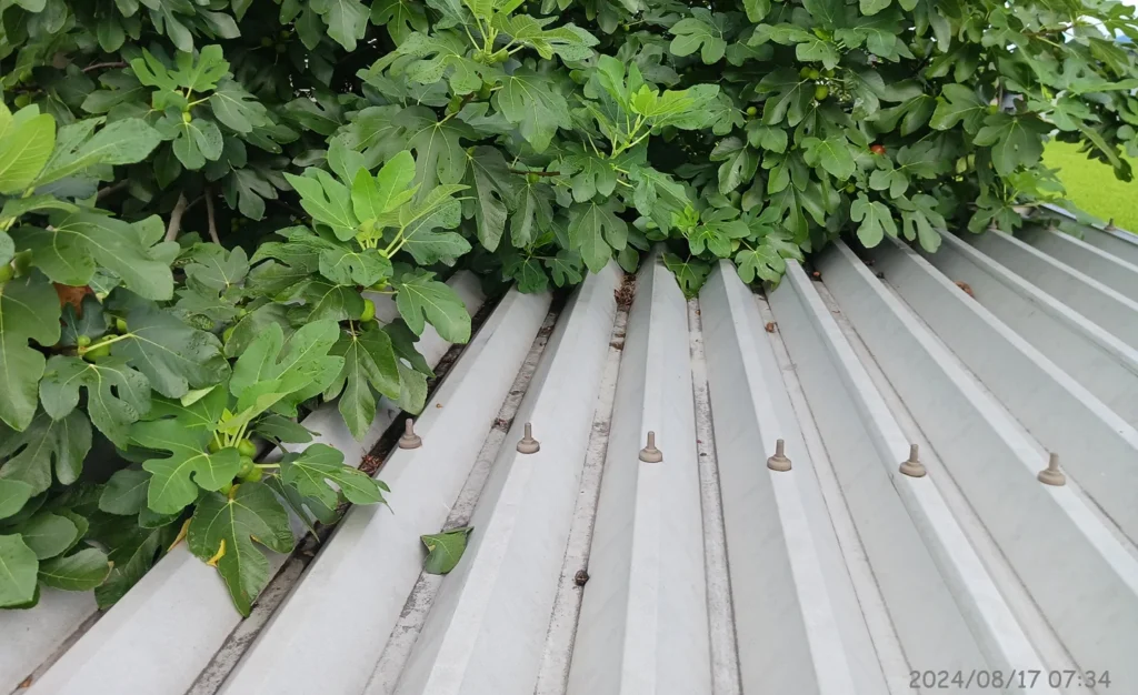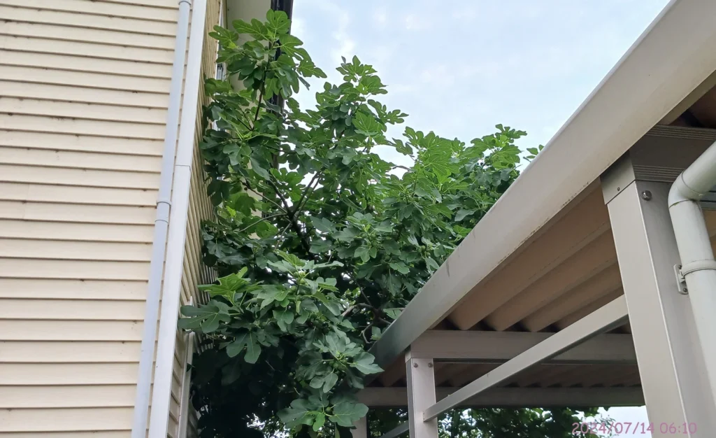 この日の朝、カーポートの屋根より高い場所に実っている無花果を収穫した。