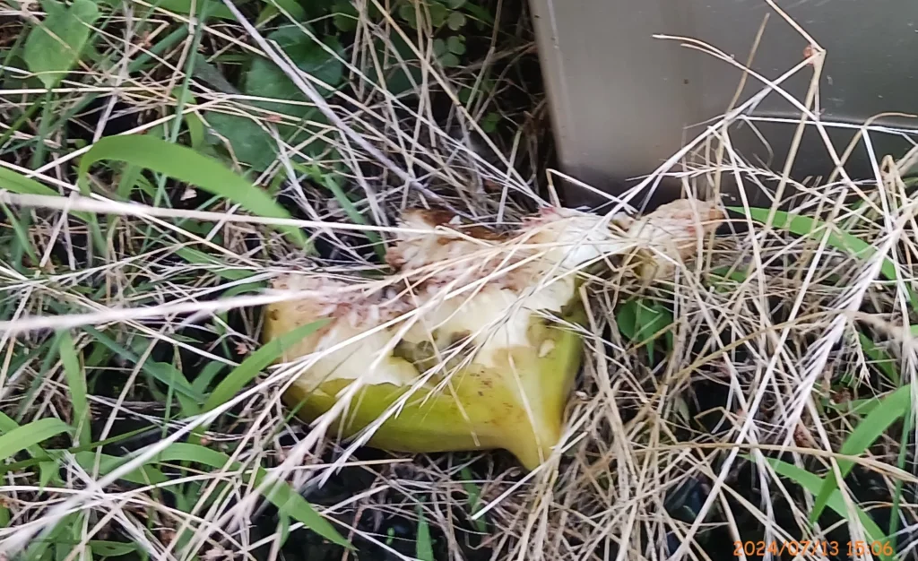 さらに放置すると、地面に落ち、そこから臭いが発生する。