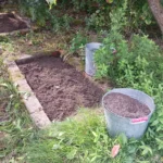 画像右上に見えるのはプラムの幹。花壇は手作りであるが、煉瓦の隙間から根が入り込む有様であった。朝7時。花壇に入り込んだ根を取り除き、ジャガイモと玉葱の植え付け作業を行った。