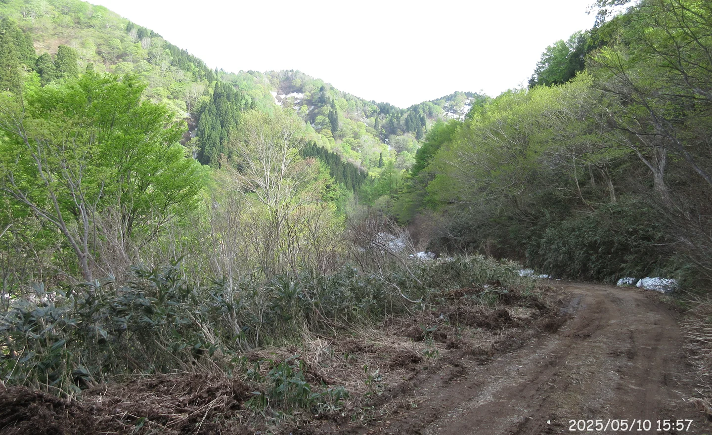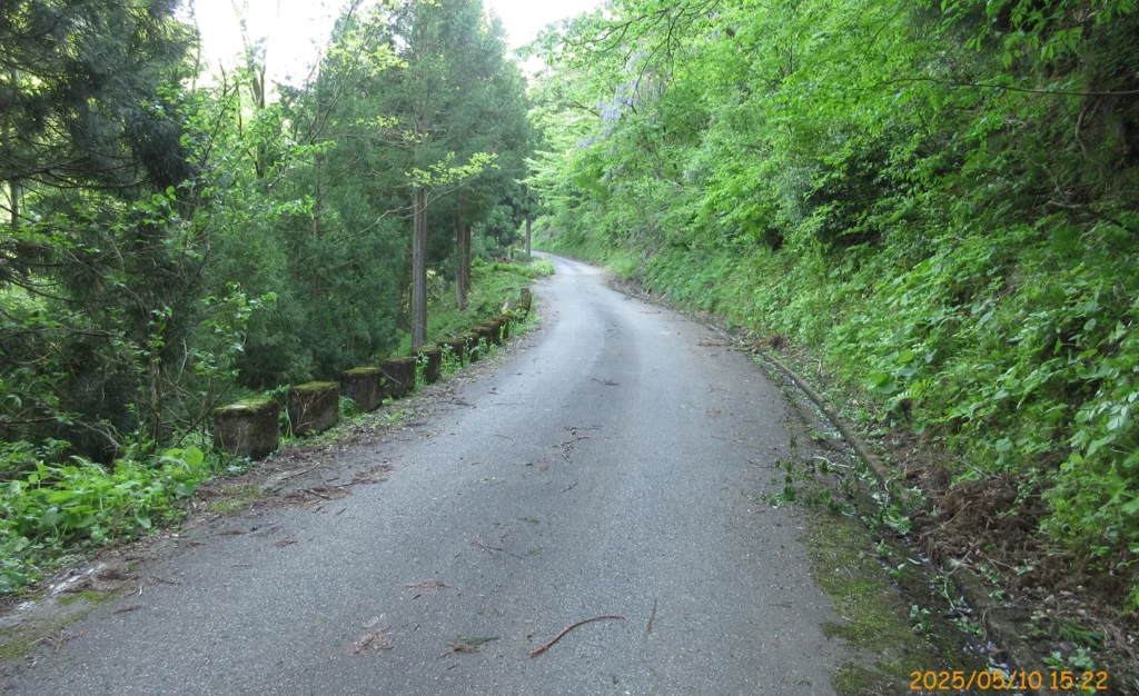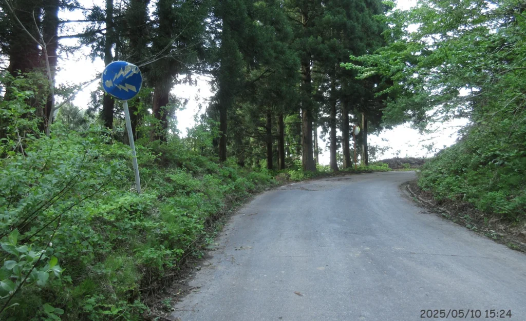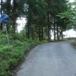 国道304号線から林道に入ってしばらく走ると、「警笛鳴らせ」という標識に出くわす。カーブミラーも見えるが、あまりアテにならないので、徐行しながら進むことになる。