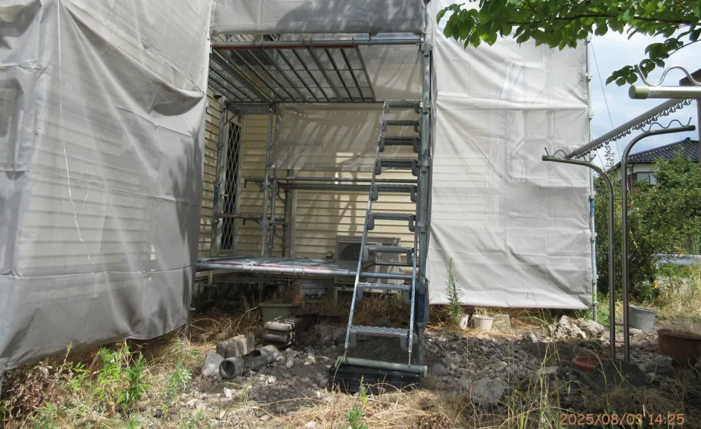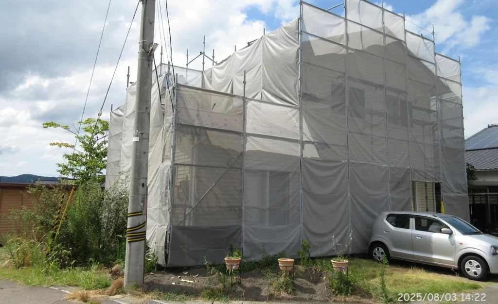 家屋の周囲に足場が組まれた。