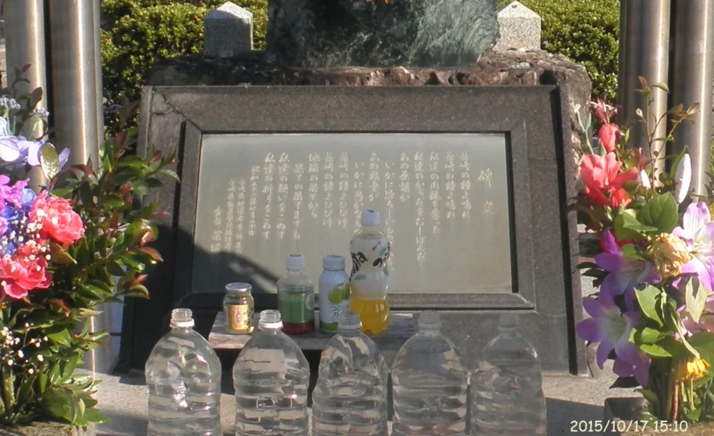 これは、反日感情を抱いた中国人活動家に赤いペンキを吹きかけられた跡です。